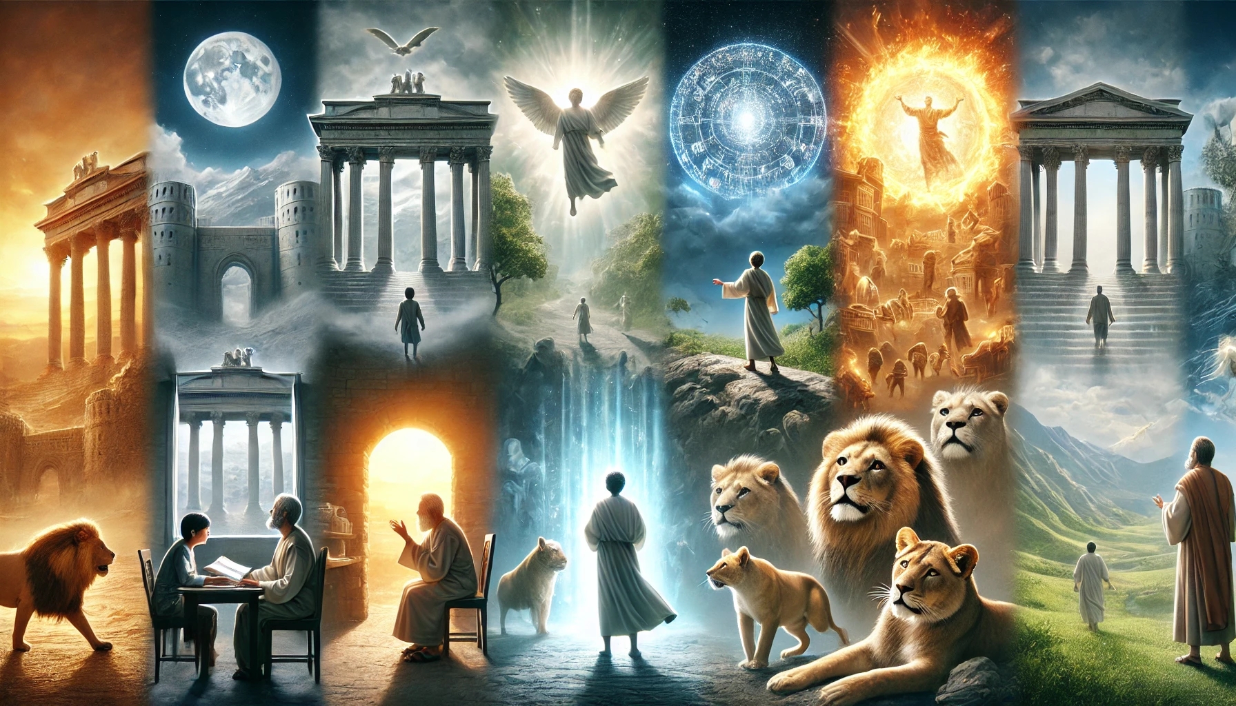 Daniel wächst heran in einem heidnischen Reich. Er dient unter Königen, deren Werte er nicht teilt. Er erlebt Machtwechsel, Intrigen, Neid, Bedrohung. Er steht vor Löwen, vor Feuer, vor Königen. Er empfängt Visionen, die ihn erschüttern. Er trägt Offenbarungen, die schwer auf seiner Seele lasten.