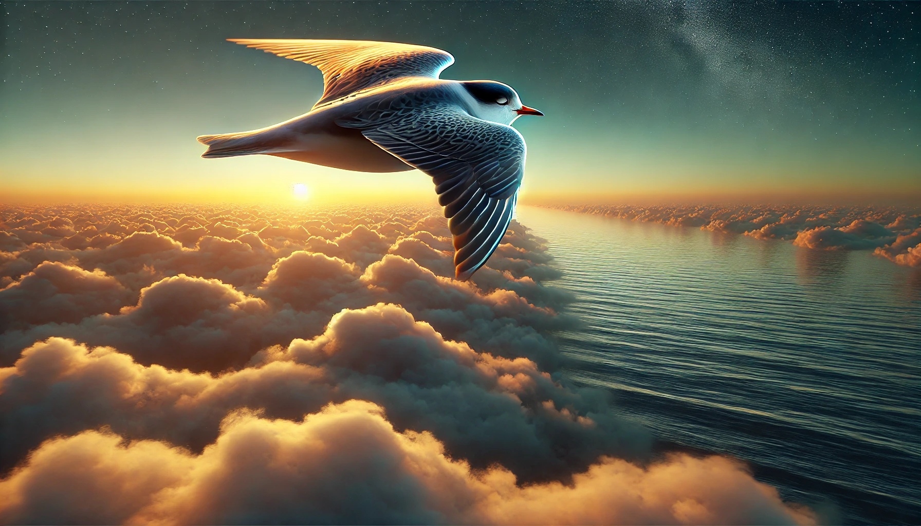 Der Schlaf der Vögel im Flug passt genau in dieses Bild: