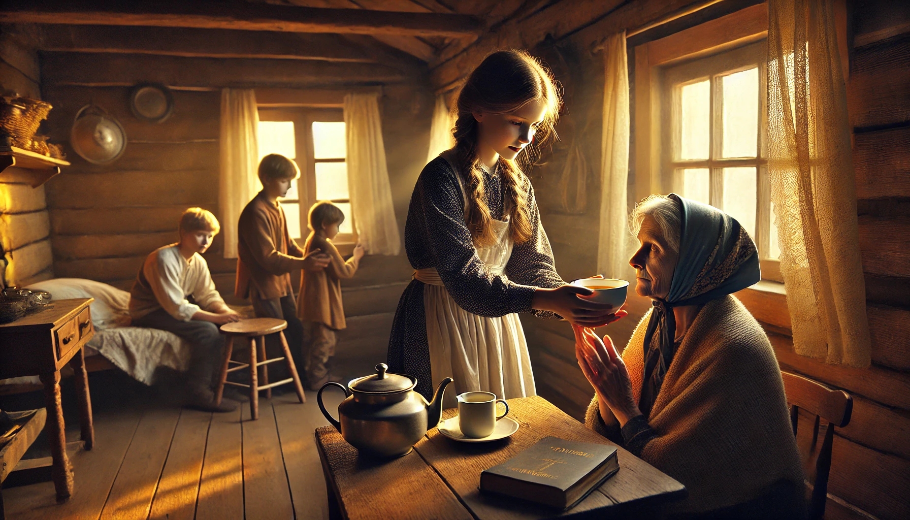 In einem kleinen Dorf lebte ein junges Mädchen namens Lea. Sie war 15 Jahre alt und das älteste von vier Geschwistern. Ihre Familie war nicht reich, aber voller Liebe. Der Vater arbeitete auf dem Feld, die Mutter war oft krank und schwach. Während andere Jugendliche ihre Zeit mit Spielen oder Treffen verbrachten, blieb Lea oft zu Hause, half beim Kochen, kümmerte sich um ihre Geschwister und brachte ihrer Mutter Tee ans Bett.