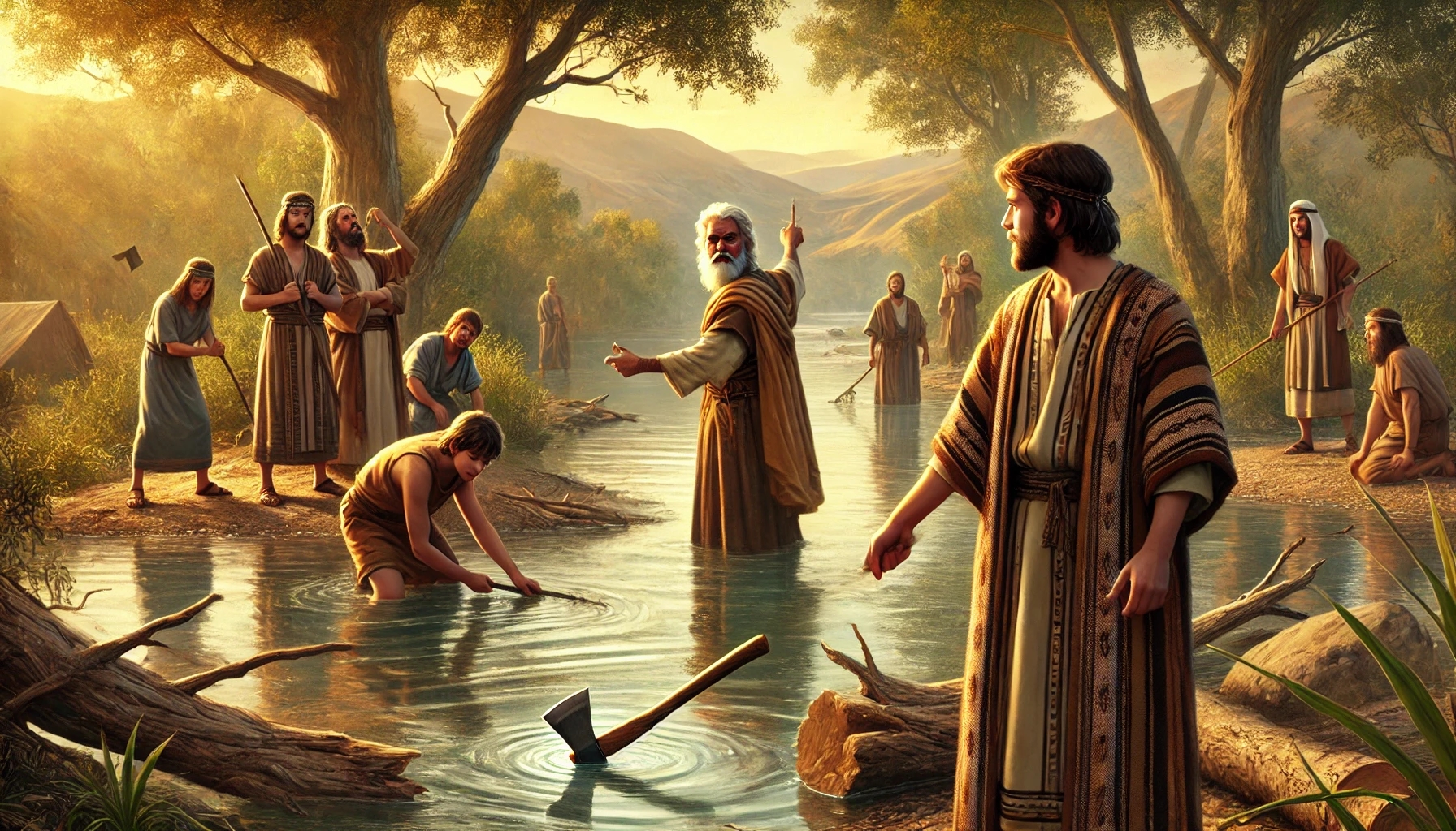 Die Geschichte beginnt ruhig und beinahe unspektakulär. Die Prophetenschüler merken, dass ihr gemeinsamer Wohnraum zu klein geworden ist. Sie schlagen vor, am Jordan neue Balken zu schlagen und ein größeres Haus zu bauen. Elisa begleitet sie – ein Zeichen seiner Nähe zu den Menschen. Während der Arbeit geschieht ein Missgeschick: Die geliehene Axt eines Schülers fällt ins Wasser. Für ihn ist das ein großes Problem, denn das Werkzeug gehört ihm nicht. Elisa schneidet ein Stück Holz ab, wirft es ins Wasser – und das Eisen schwimmt. Das kleine Wunder zeigt, dass Gott sich nicht nur um große nationale Krisen kümmert, sondern auch um alltägliche Sorgen.