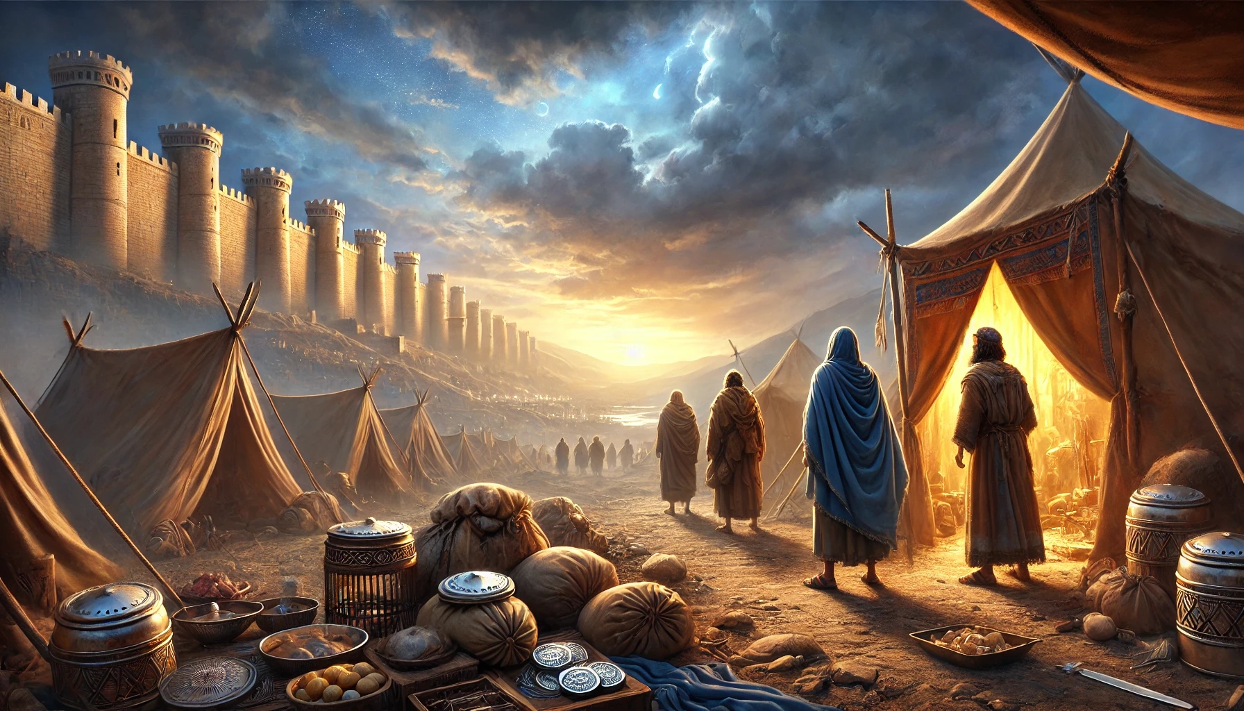 2.Könige 7 erzählt, wie Gott die Belagerung Samarias auf wundersame Weise beendet. Vier aussätzige Männer entdecken ein verlassenes aramäisches Lager voller Vorräte und bringen die gute Nachricht in die Stadt. Die Hungersnot endet abrupt, und Elisas Prophezeiung erfüllt sich vollständig.