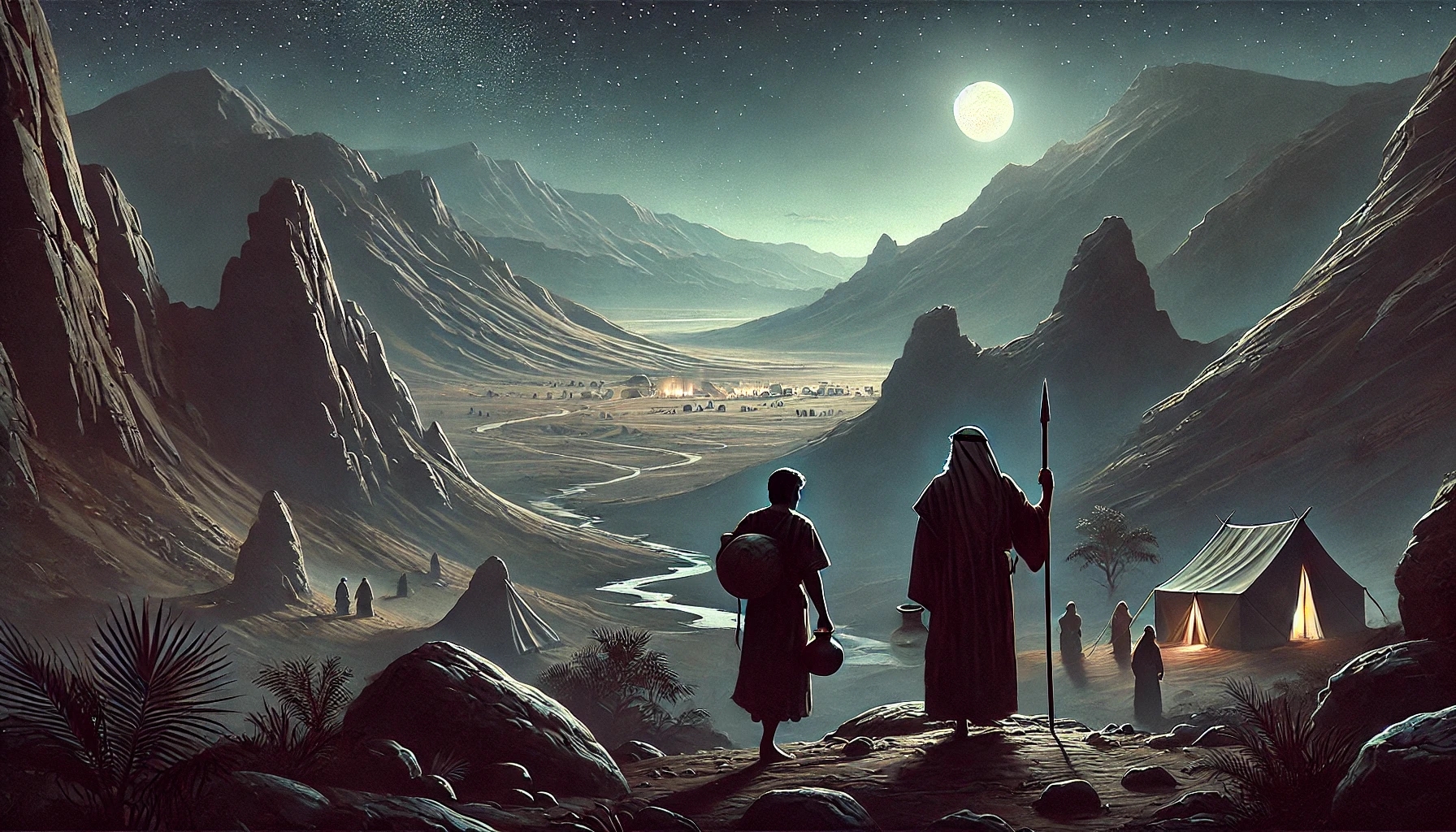 David beobachtet aus der Ferne. Er ist kein getriebener Flüchtling mehr – sondern ein Mann, der mit Weitblick handelt. Er sendet Kundschafter aus und bestätigt Sauls Anwesenheit. Dann fasst er einen kühnen Entschluss. Gemeinsam mit Abisai, dem Bruder Joabs, schleicht er sich bei Nacht ins Lager des Königs.