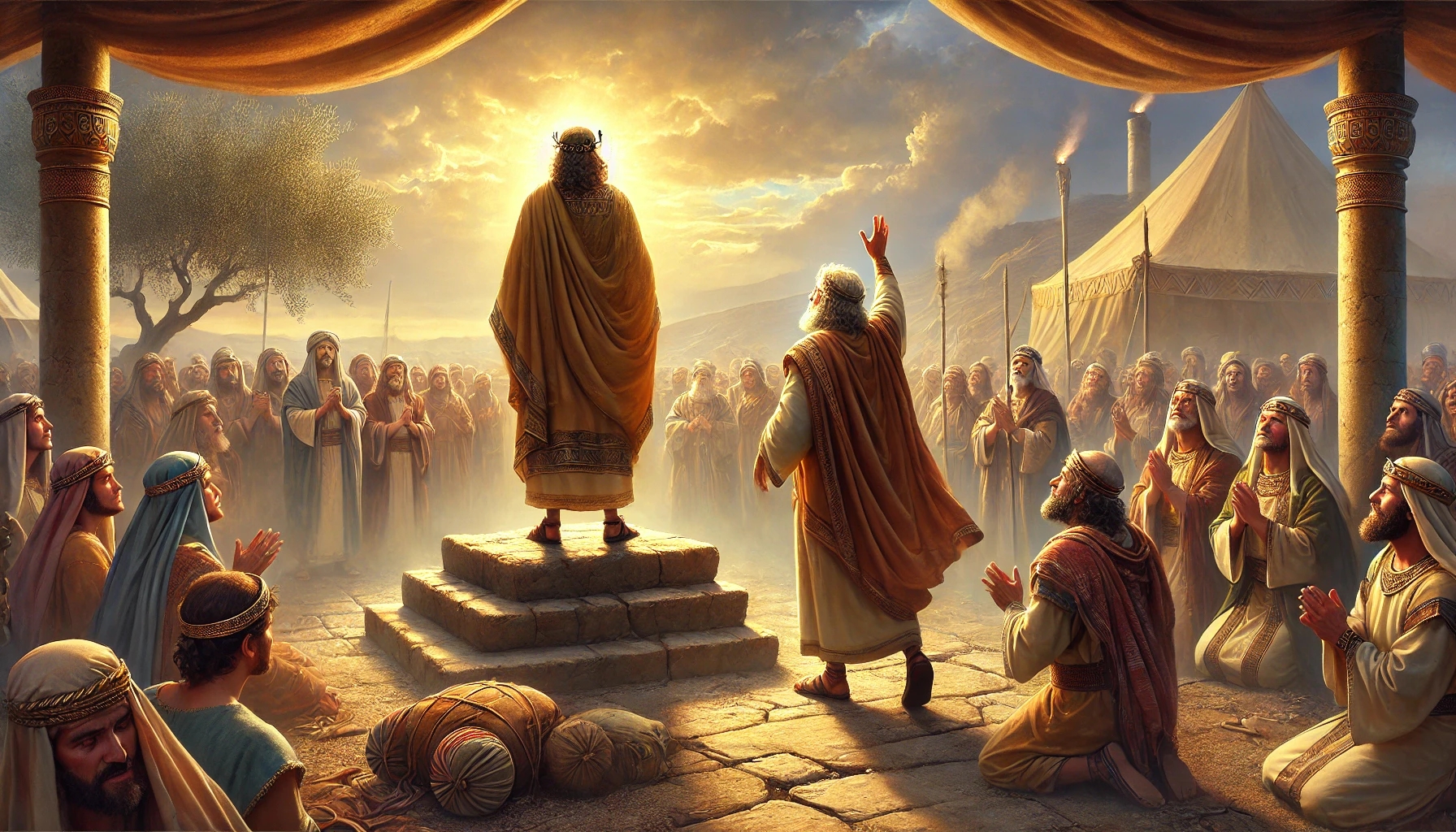 Josua erneuert mit dem Volk den Bund in Sichem – ein feierlicher Abschluss seines Lebenswerks und ein Neubeginn für das Volk Israel.