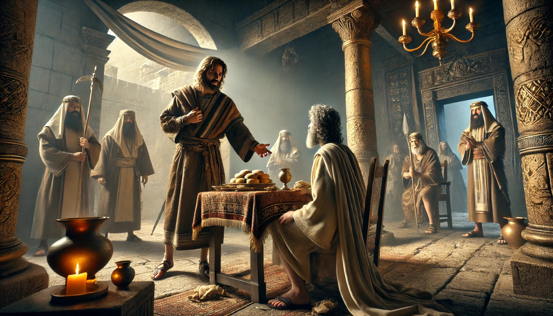 Doch der Priester hat nur das heilige Schaubrot, das eigentlich nur den Priestern zusteht. Trotzdem gibt er es David – weil Not größer ist als Vorschrift. Es ist ein Moment der Barmherzigkeit. Jesus selbst wird sich später auf diese Szene berufen (Matthäus 12,3–4), um zu zeigen, dass der Mensch dem Gesetz nicht untergeordnet ist, sondern das Gesetz dem Menschen dienen soll.