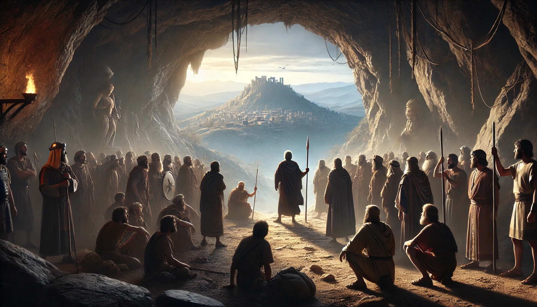 David ist erneut auf der Flucht. Er findet Zuflucht in der Höhle Adullam, einem dunklen, abgelegenen Ort. Doch diese Höhle wird kein Ort der Isolation, sondern der Sammlung. Einer nach dem anderen kommen Menschen zu ihm: seine Brüder, seine Familie – und dann jene, die niemand haben will. Männer in Not, verschuldet, verbittert, ohne Hoffnung. Vierhundert werden es. Kein Heer aus Helden, sondern ein Haufen Zerbrochener. Und David wird ihr Anführer. Nicht durch Macht, sondern durch Präsenz.