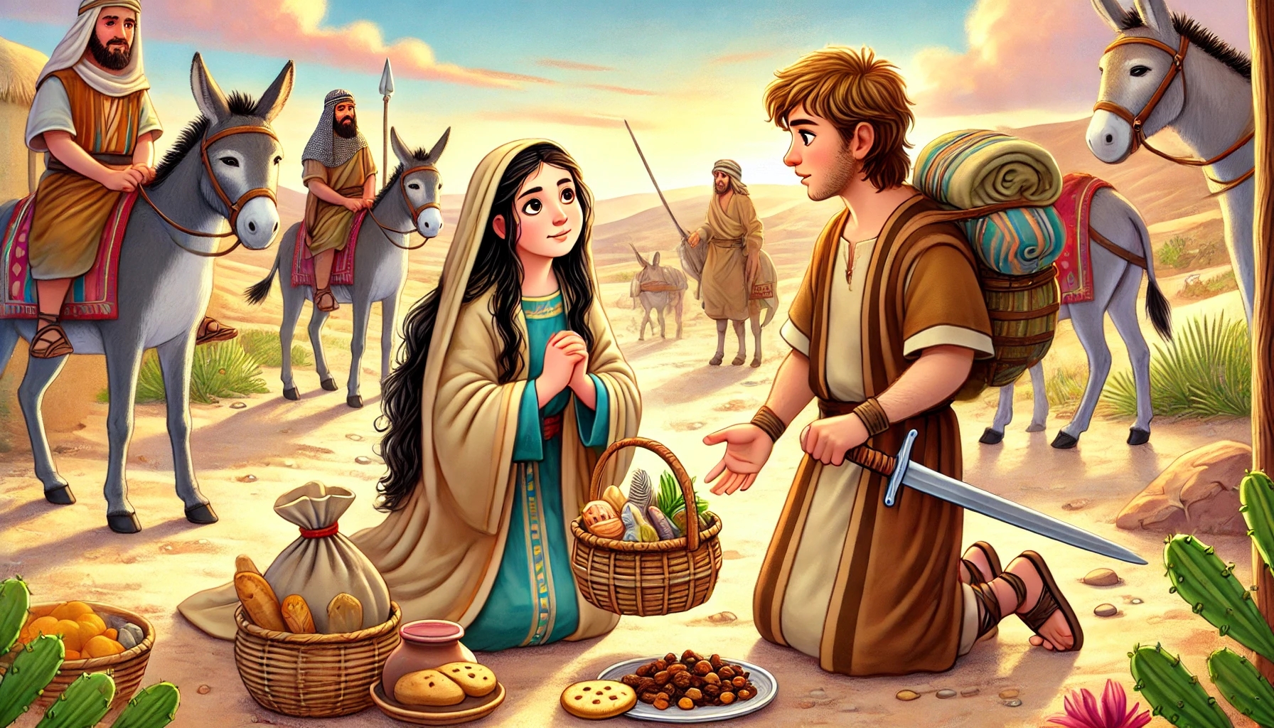Nabals Frau, Abigajil, hörte von dem, was passiert war – und sie erschrak. Sie wusste: Ihr Mann hatte einen Fehler gemacht. Und wenn David jetzt wirklich kommt, wird es schlimm enden.