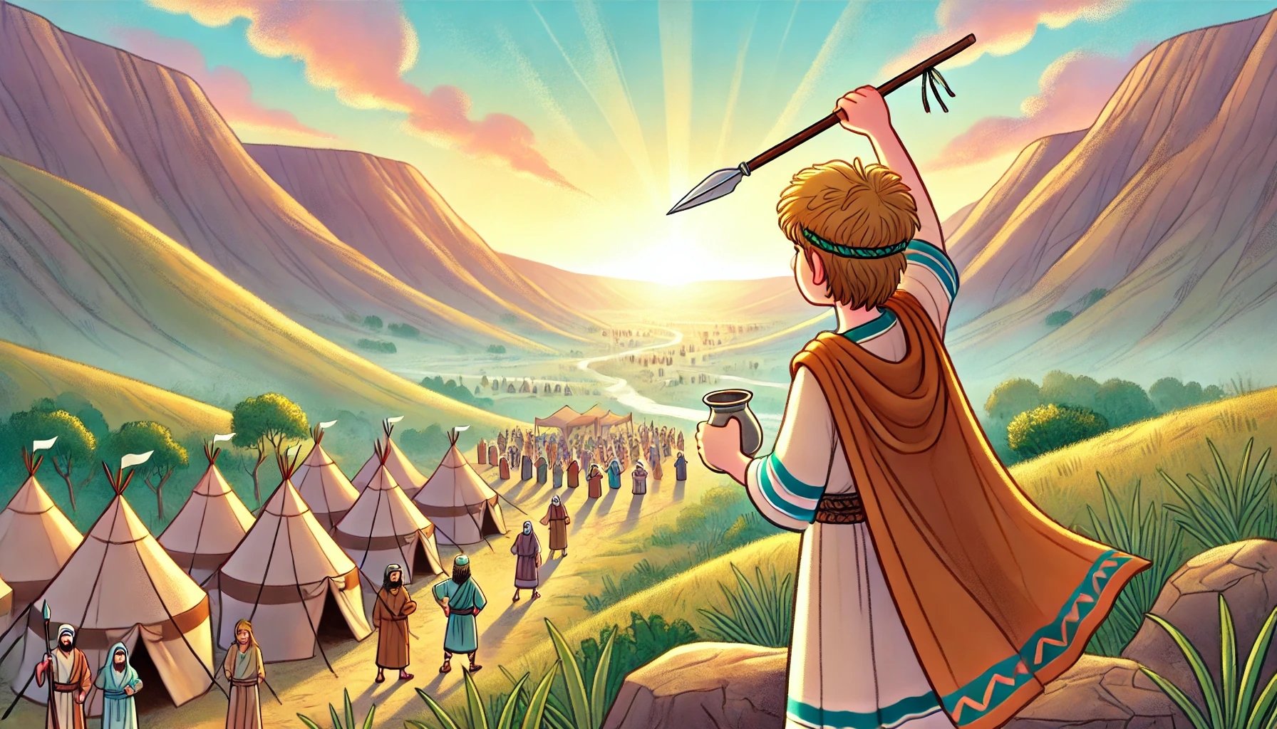 Stattdessen nahm David den Speer und den Wasserkrug – und schlich mit Abischai zurück auf einen Hügel, weit genug weg vom Lager, aber so, dass alle ihn hören konnten.