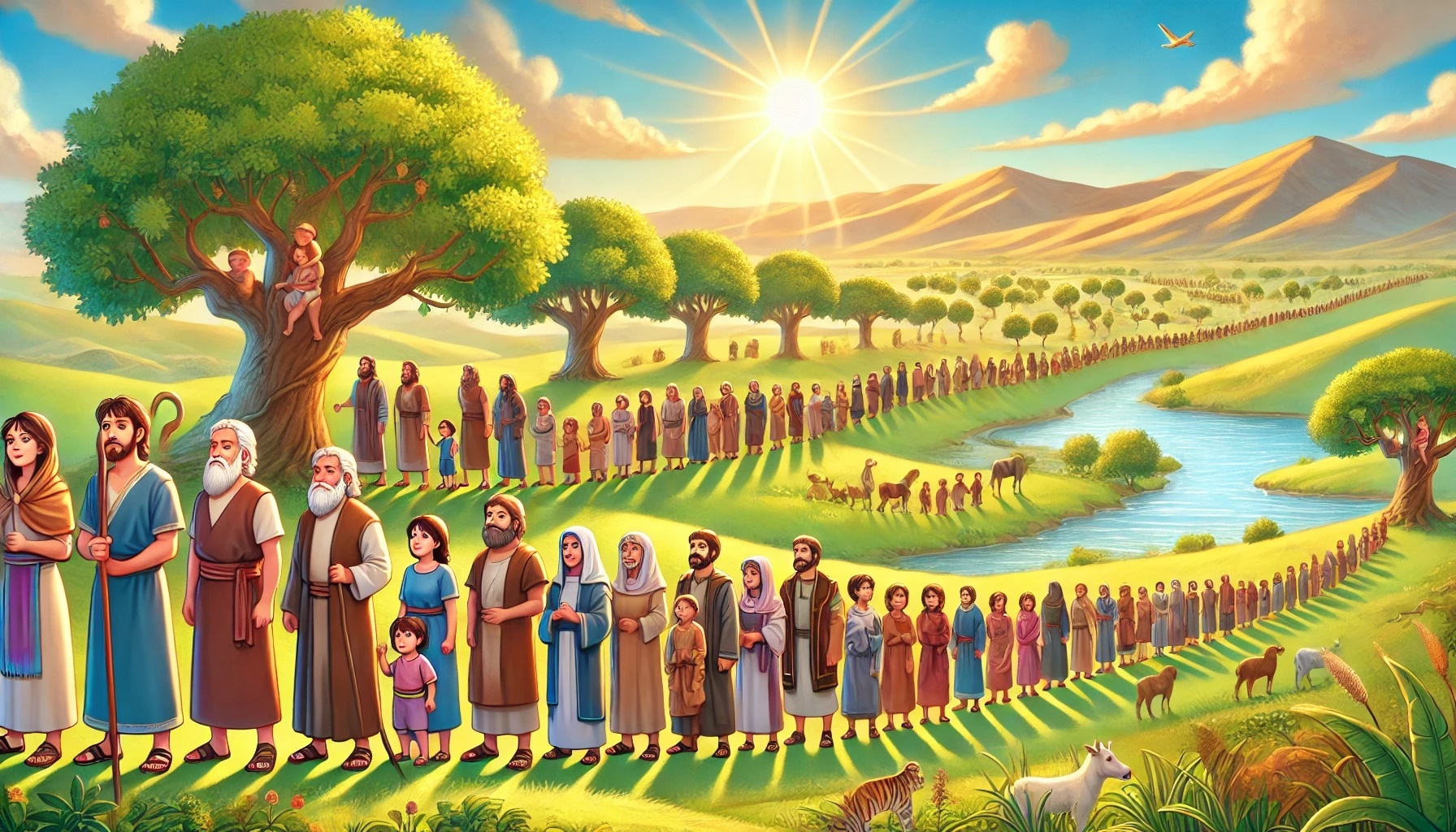 Die Geschichte beginnt mit Adam. Er war der erste Mensch, den Gott geschaffen hat. Gott formte ihn mit großer Liebe und gab ihm Leben. Adam lebte in einer wunderschönen Welt, in der alles gut war. Es gab keinen Streit, keine Angst und keinen Schmerz.