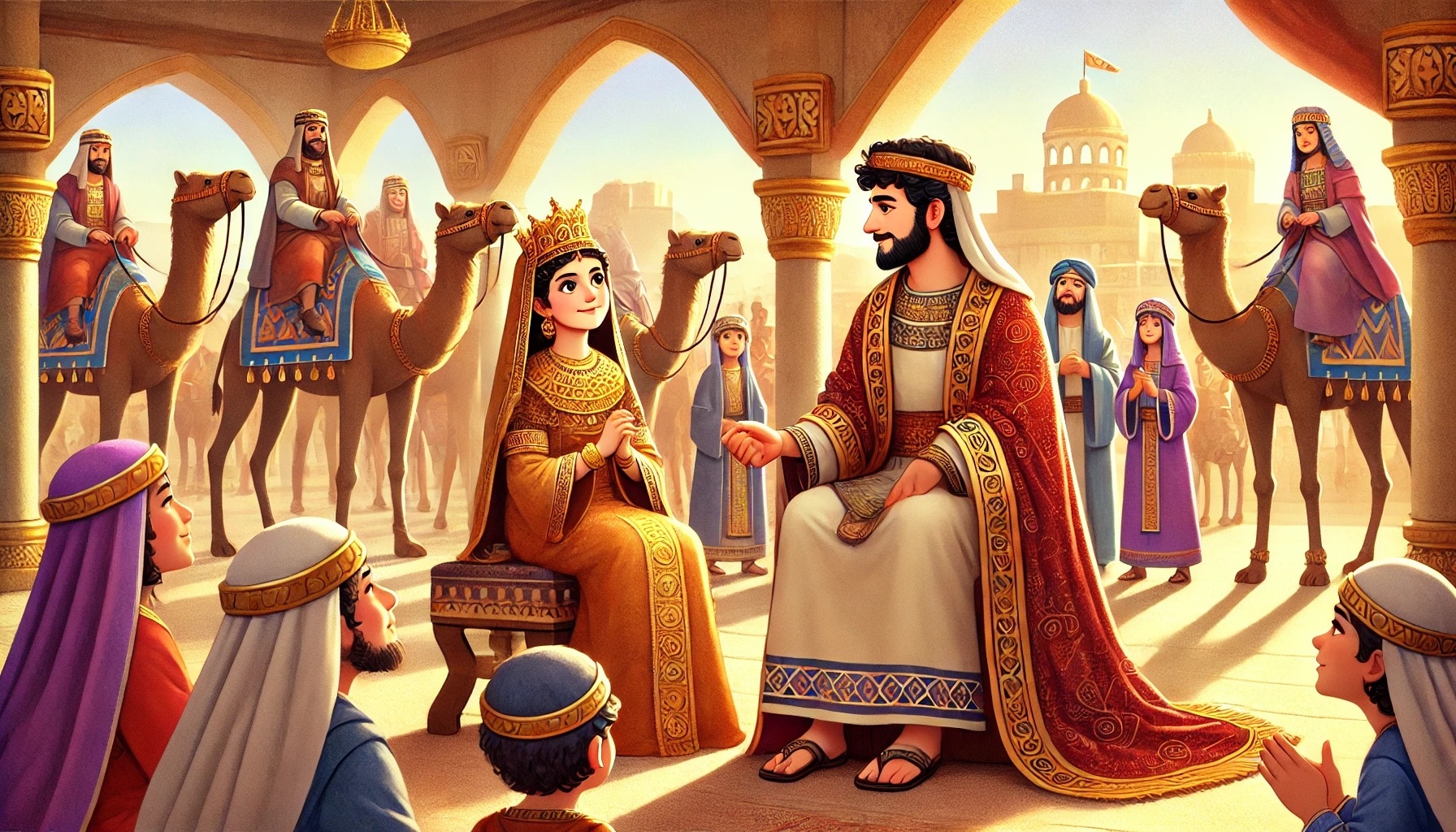 Diese Nachrichten erreichen sogar eine Königin aus einem fernen Land. Sie hört all das – und will es selbst sehen. Doch sie glaubt nicht einfach alles. Sie macht sich auf den Weg, um Salomo zu prüfen.