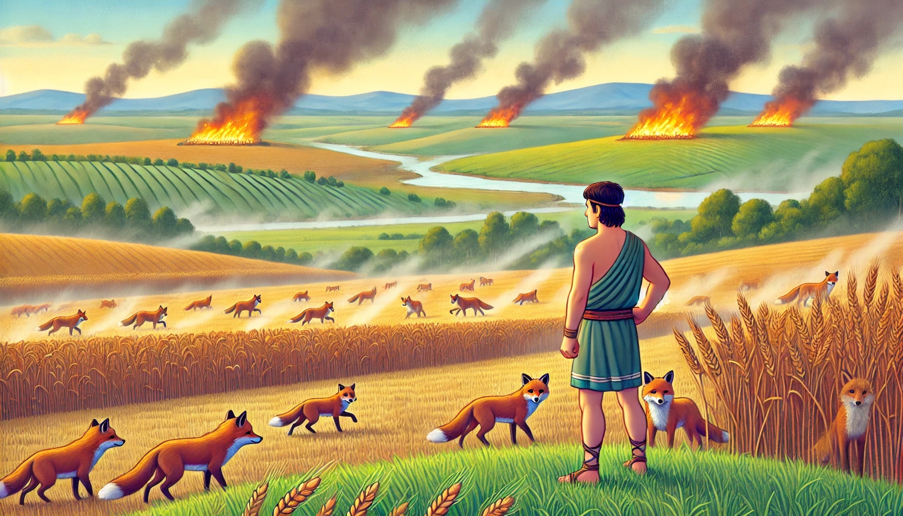 Er band sie paarweise zusammen, befestigte brennende Fackeln an ihren SchwĂ€nzen đ„