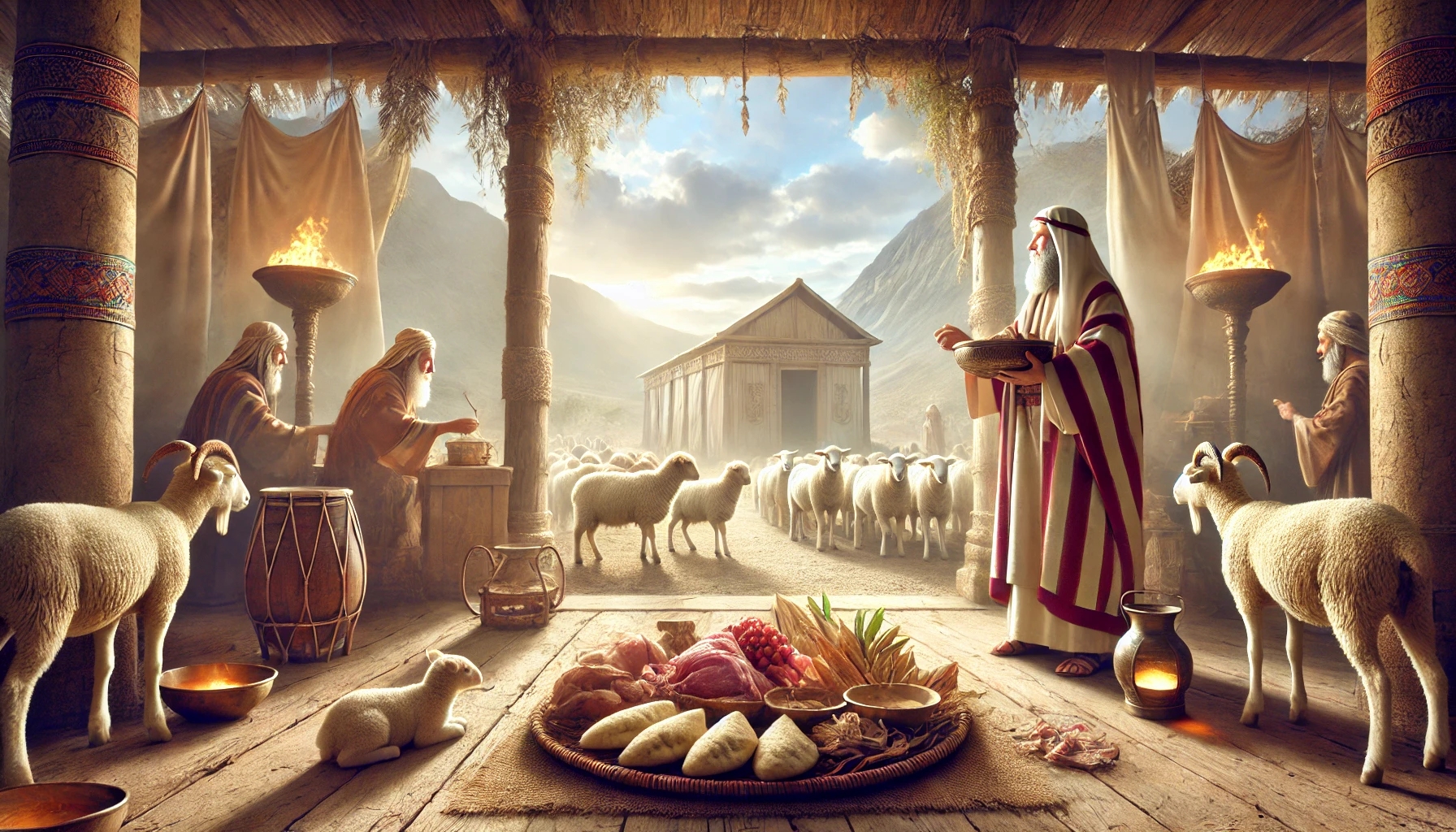 Am Ende der Weihezeit wurde ein umfangreiches Opfer dargebracht (Brand-, Sünd- und Dankopfer)