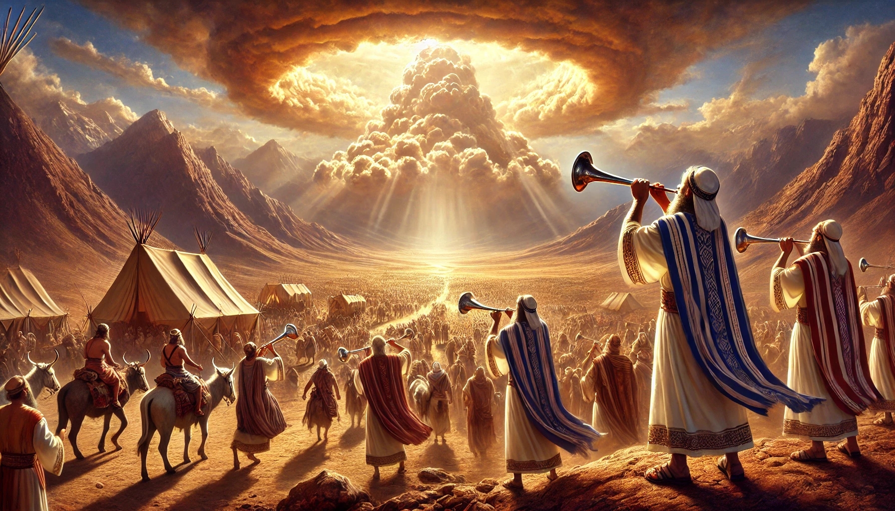 In 4. Mose 10 wird der Übergang von der Lagerphase am Sinai zum Aufbruch in Richtung der Verheißung beschrieben. Gott selbst gibt die Anweisung zur Kommunikation und Organisation durch zwei silberne Drommeten. Das Volk Israel zieht zum ersten Mal geordnet durch die Wüste, begleitet von der Bundeslade und der Wolkensäule. Diese Verse zeigen uns, wie wichtig klare göttliche Führung, menschliche Zusammenarbeit und geordnete Gemeinschaft im Glaubensleben sind.