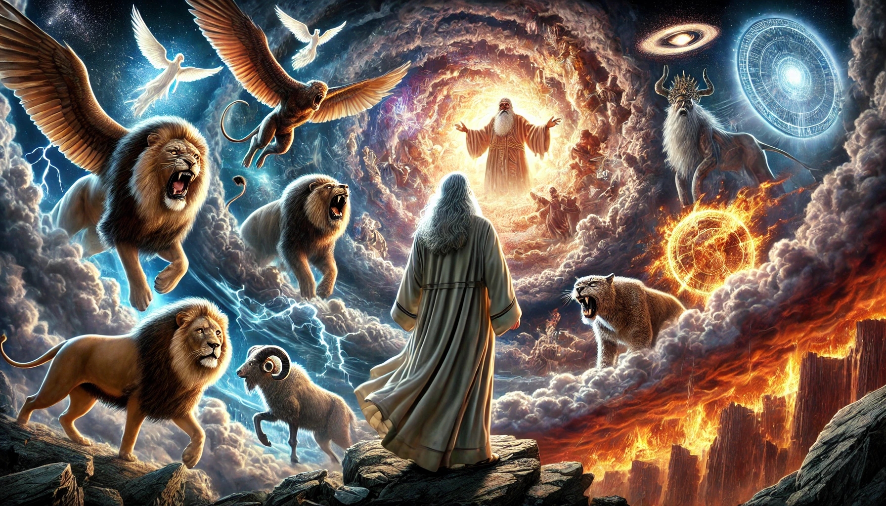 Es beginnt mit einer Vision in der Nacht. Daniel sieht vier Tiere, jedes furchterregender als das vorherige. Sie stehen für Reiche und Systeme, für menschliche Macht, die kommt und geht. Daniel sieht Gericht, einen himmlischen Thron und schließlich einen Menschensohn, dem ein ewiges Reich gegeben wird. Diese Bilder sind groß, gewaltig und zugleich beängstigend.