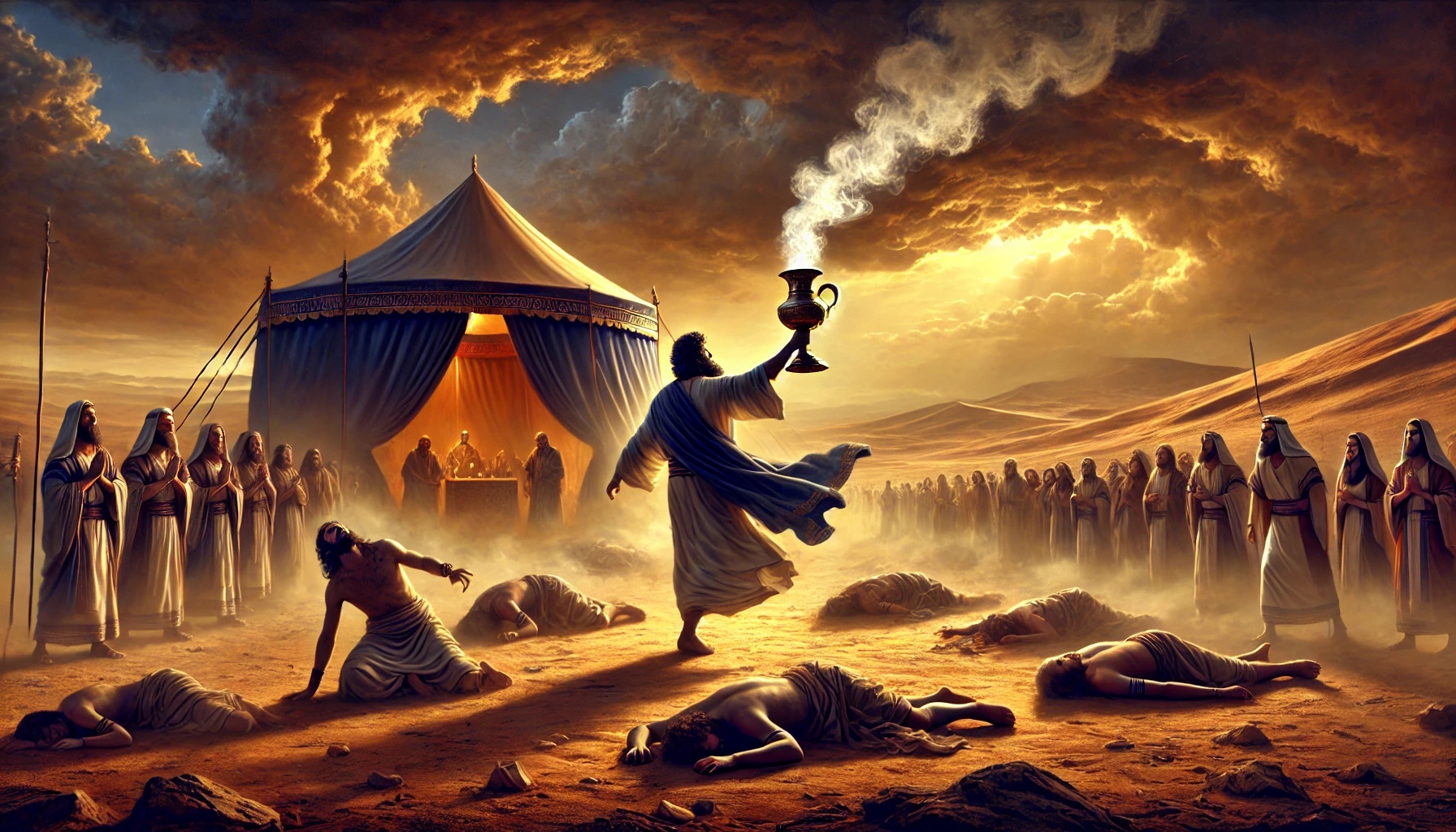Aaron tritt versöhnend dazwischen: mit Räucherpfanne und Räucherwerk.