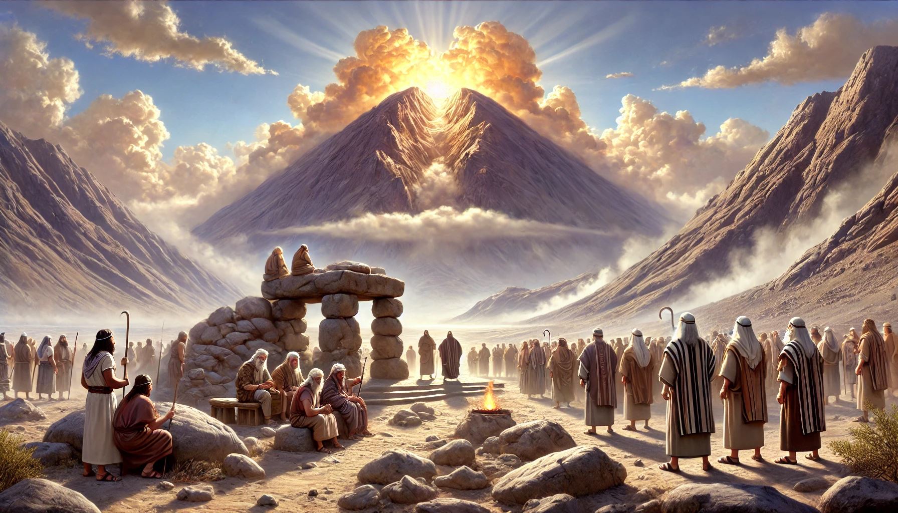 Gott ruft Mose, Aaron, Nadab, Abihu und die siebzig Ältesten zu sich – aber nur Mose darf nahe zu ihm kommen. Diese Ordnung zeigt die Heiligkeit Gottes und die Notwendigkeit von Berufung und Vermittlung.