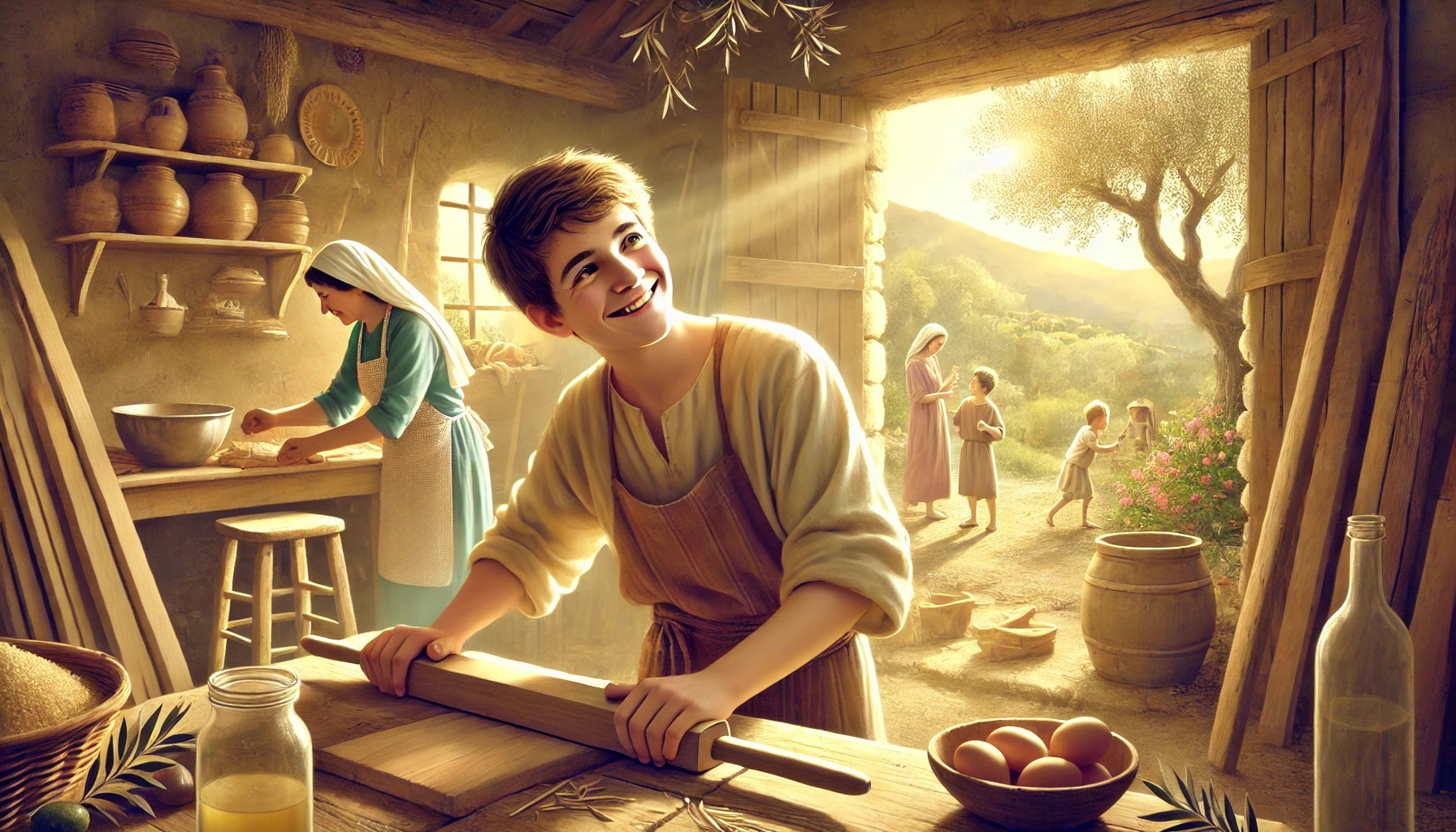 Jesus lebte in einem einfachen, ländlichen Haus und trug treu und mit Freude Seinen Teil zur Last der Familie bei.
